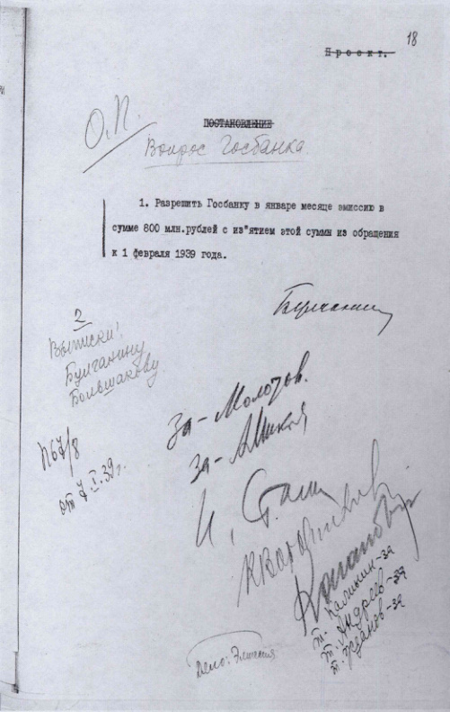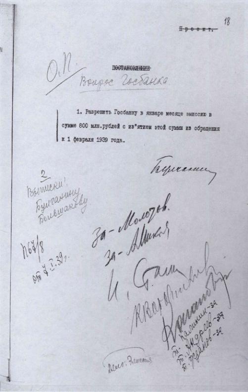 Постановление Политбюро ЦК ВКП(б) п. 67/8 "Вопрос Госбанка". 7 января 1939 г.