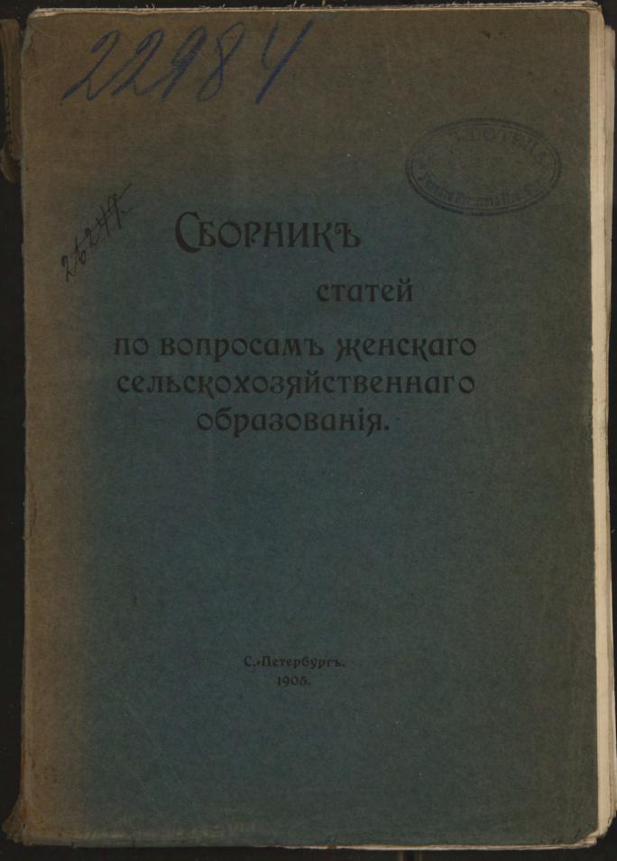 Сборник статей по вопросам женского сельскохозяйственного образования.