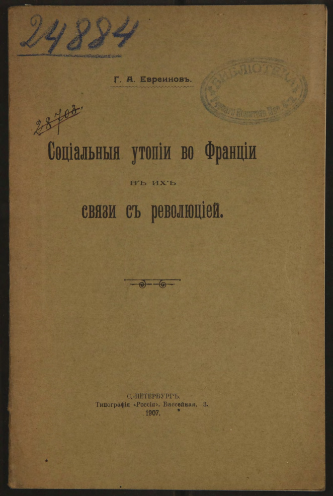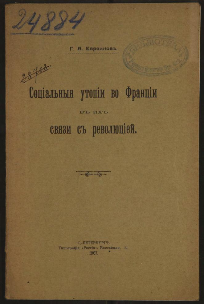 Социальные утопии во Франции в их связи с революцией.