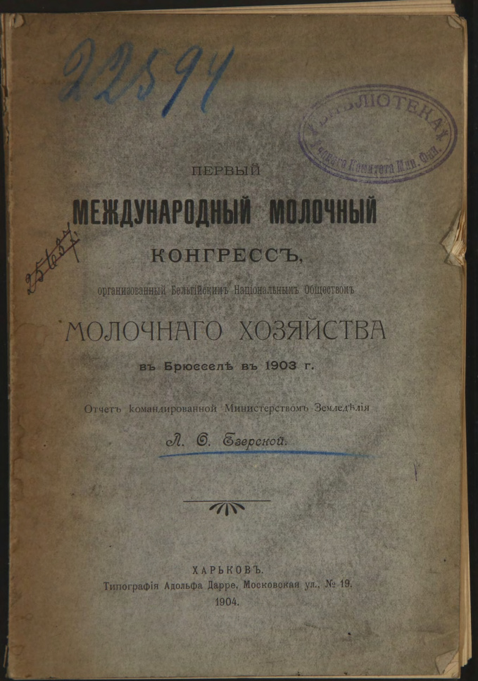 Первый Международный молочный конгресс, организованный Бельгийским национальным обществом молочного хозяйства в Брюсселе в 1903 г.