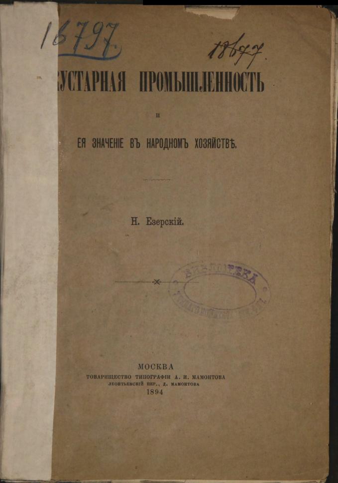 Кустарная промышленность и ее значение в народном хозяйстве.