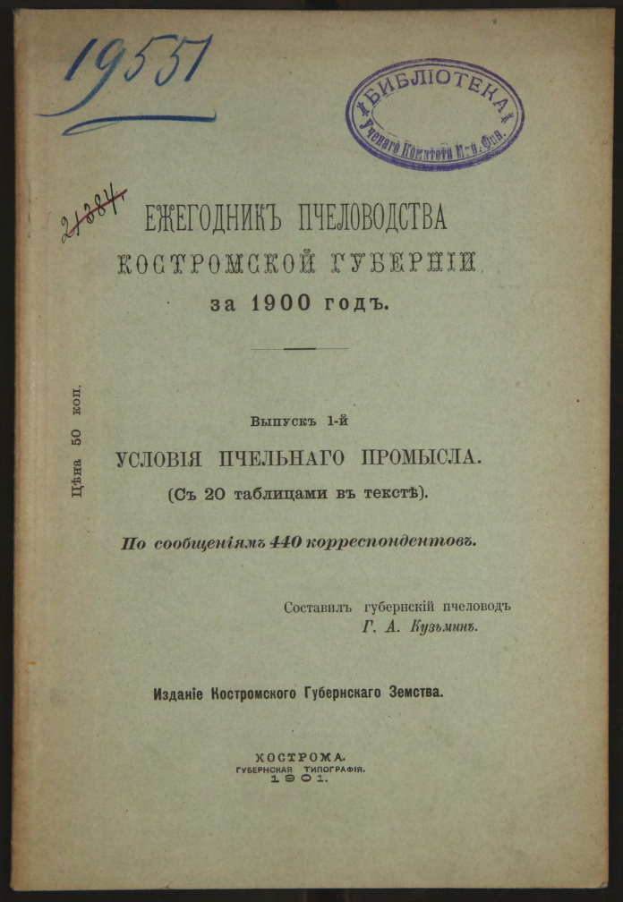 Ежегодник пчеловодства Костромской губернии за 1900 г. Вып. I. Условия пчельного промысла