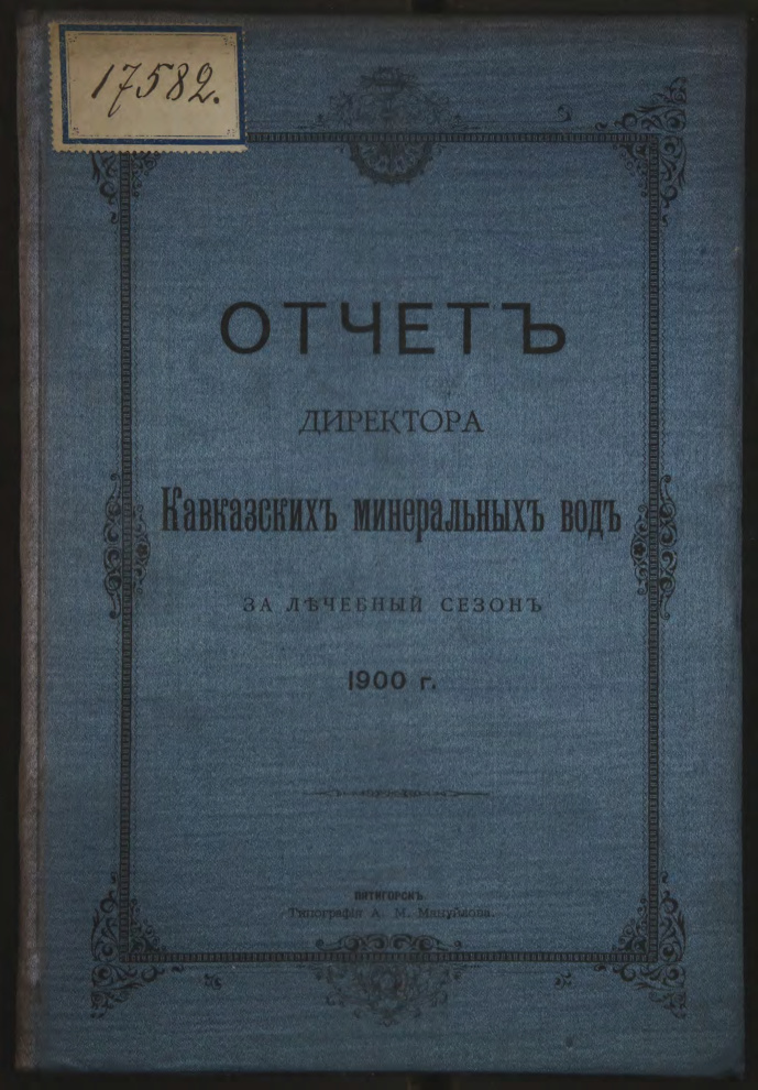 Отчет Директора Кавказских минеральных вод за лечебный сезон 1900 г.