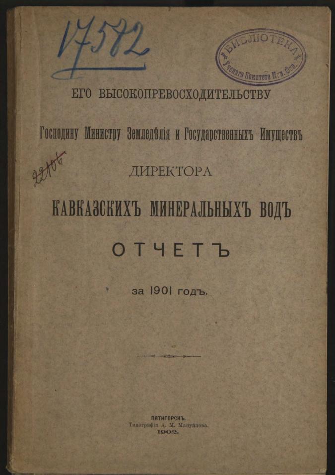Отчет Директора Кавказских минеральных вод за 1901 г.
