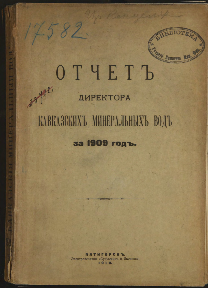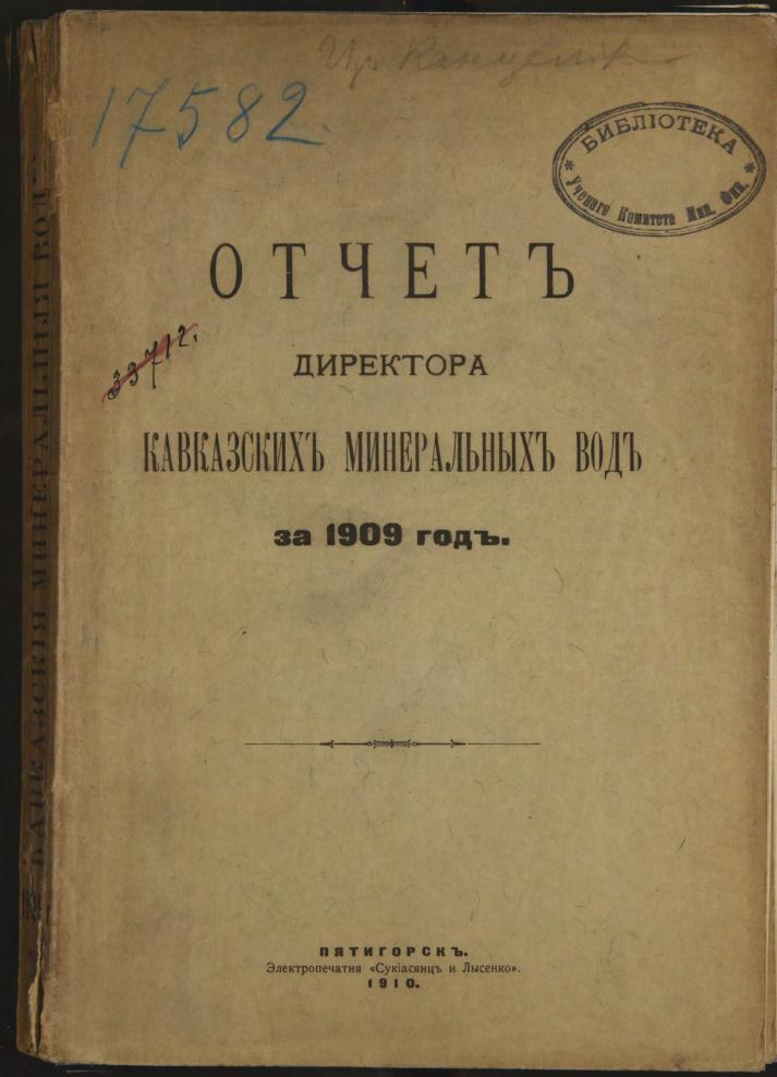 Отчет Директора Кавказских минеральных вод за 1909 г.