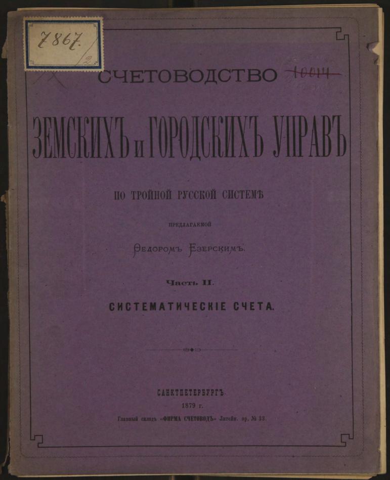 Счетоводство земских и городских управ по тройной русской системе, предлагаемой Федором Езерским. Ч.2.