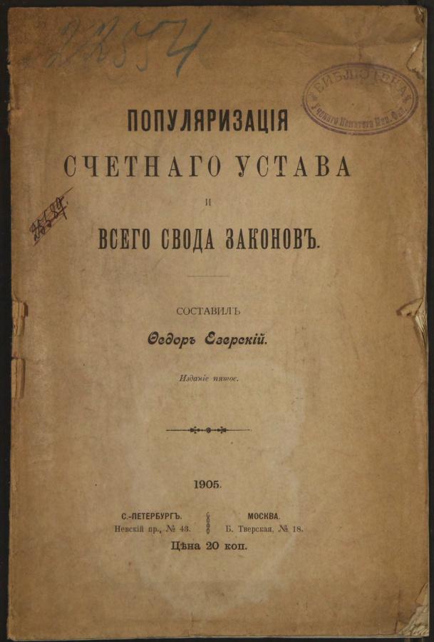 Популяризация счетного устава и всего Свода законов. СПб.-