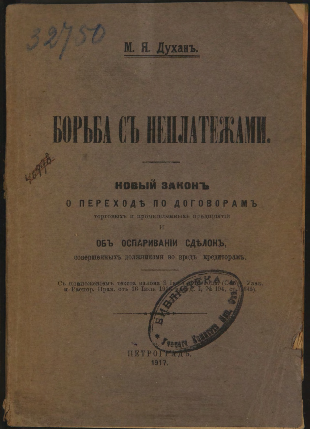 Борьба с неплатежами. Новый закон о переходе по договорам торговых и промышленных предприятий и об оспаривании сделок, совершенных должниками во вред кредиторам.