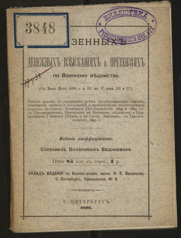 О казенных денежных взысканиях и претензиях по Военному Ведомству.