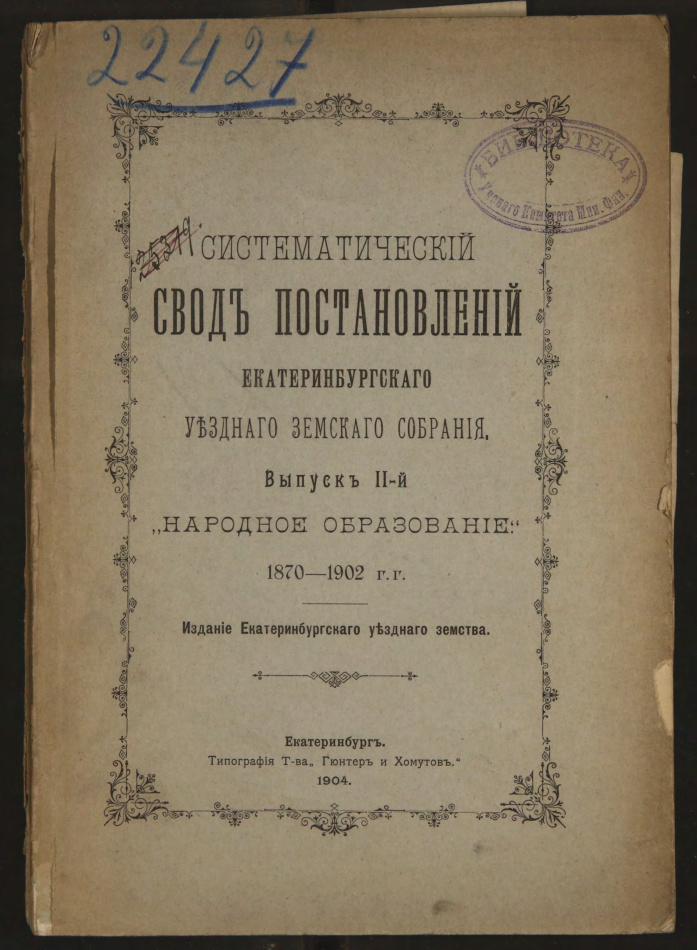 Систематический свод постановлений Екатеринбургского уездного земского собрания. Вып. 2