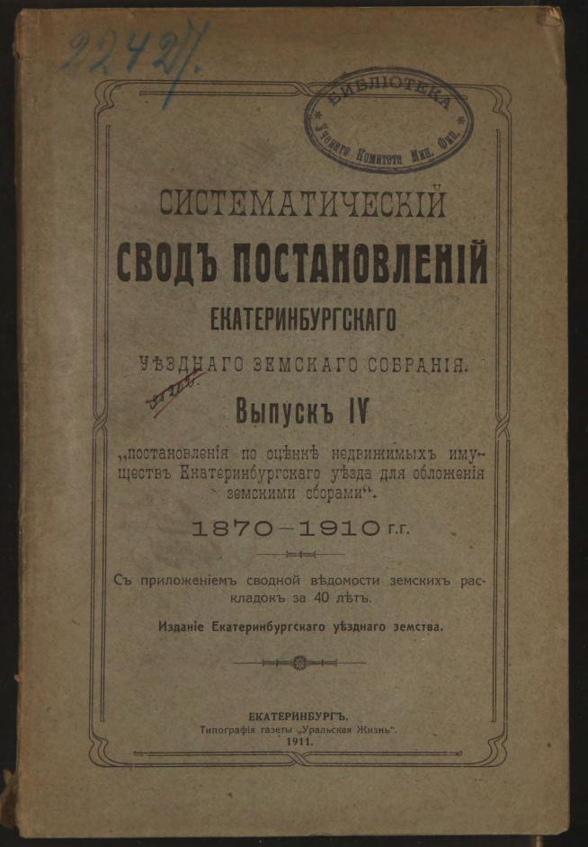 Систематический свод постановлений Екатеринбургского уездного земского собрания. Вып. 4