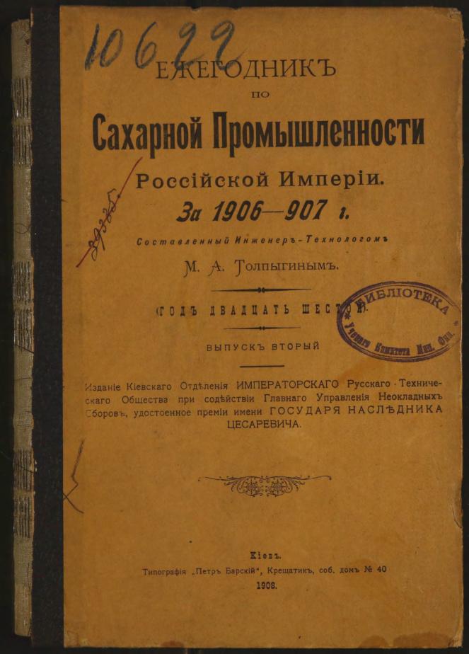 Ежегодник по сахарной промышленности Российской империи за 1906-907 г. Вып. 2.