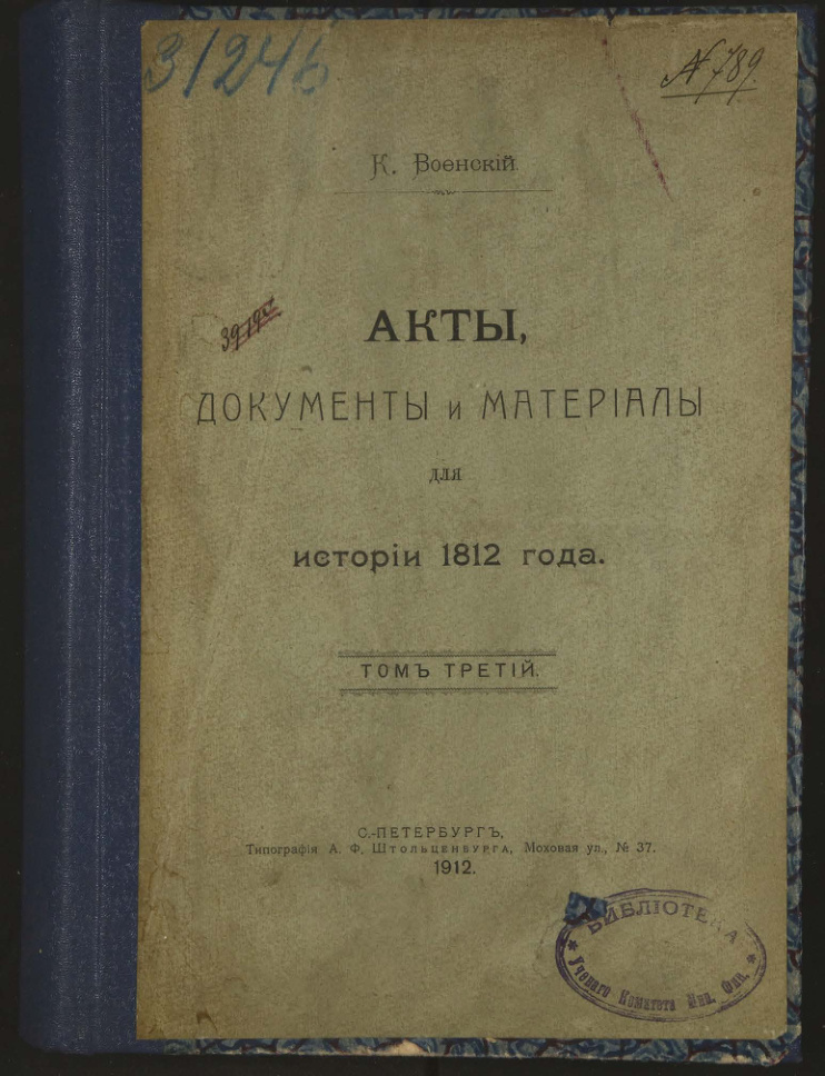 Акты, документы и материалы для политической и бытовой истории 1812 года.