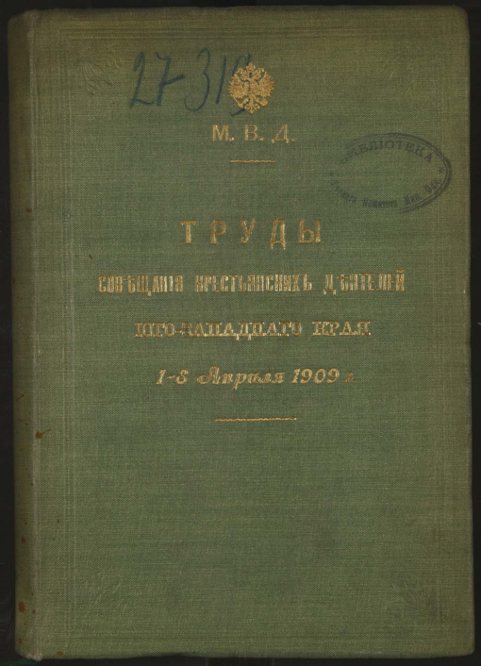 Труды совещания крестьянских деятелей Юго-Западного края 1-8 апреля 1909 г.