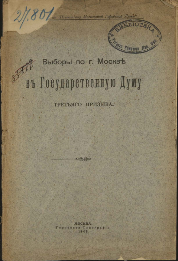 Выборы по г. Москве в Государственную думу первого призыва.