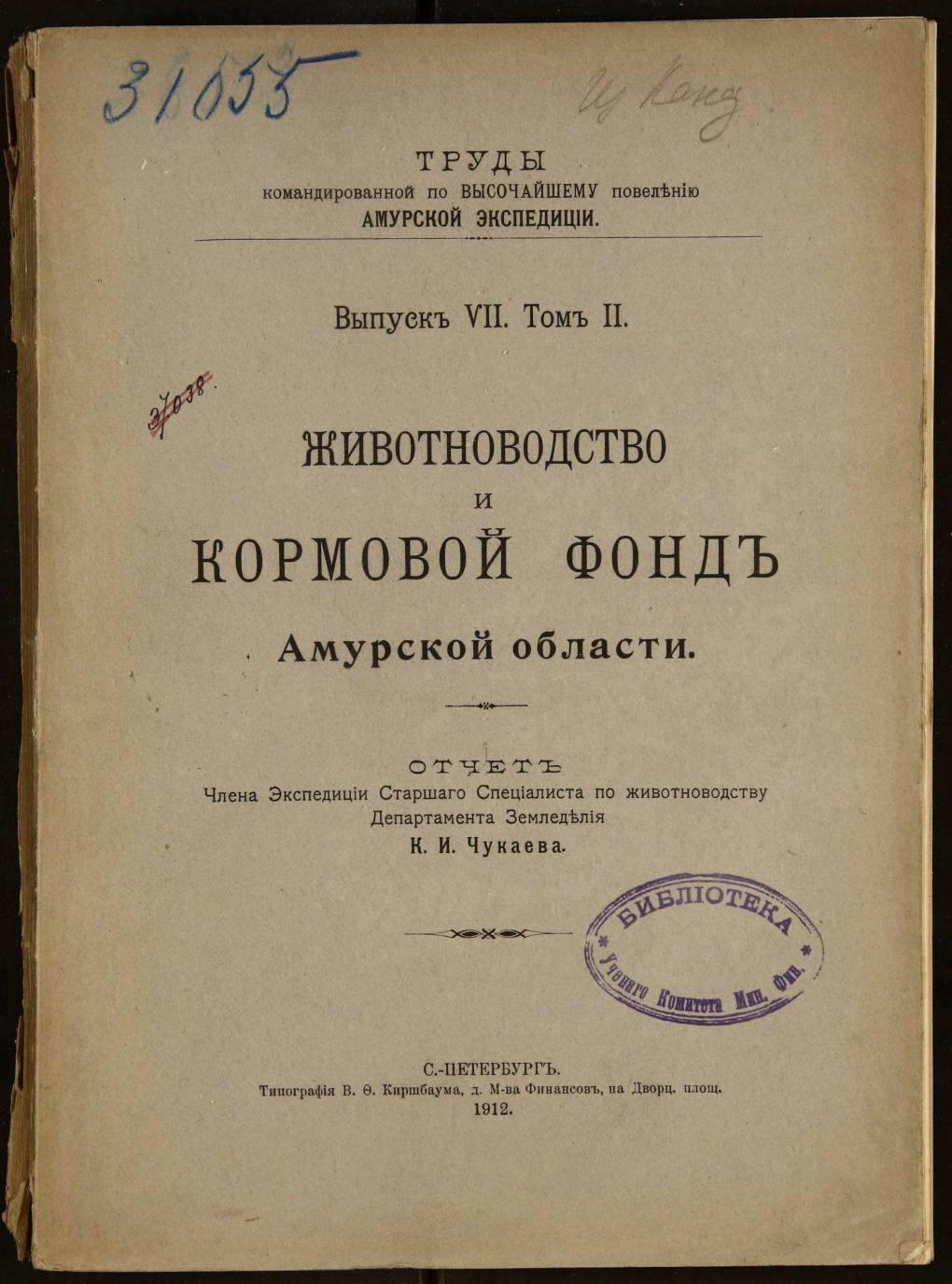 Животноводство и кормовой фонд Амурской области. Выпуск VII. Т. II.