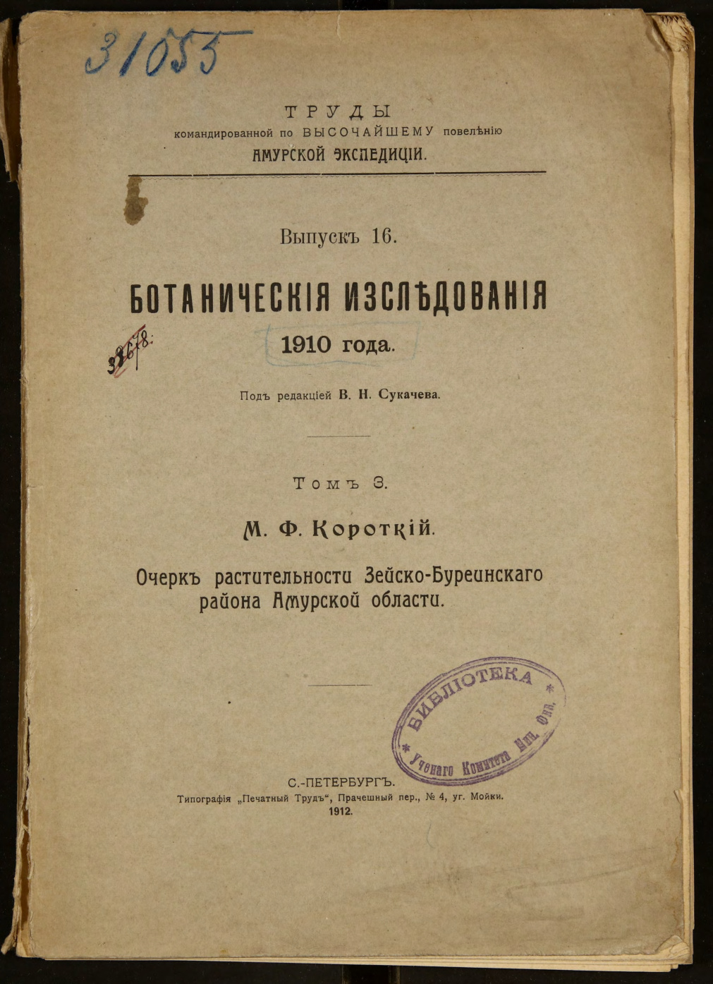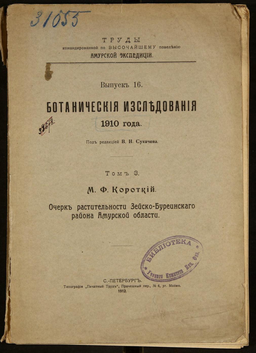 Ботанические исследования 1910 года. Очерк растительности Зейско-Буреинского района Амурской области. Выпуск 16. Т.3.