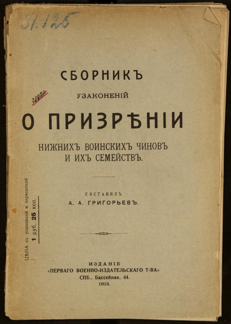 Сборник узаконений о призрении нижних воинских чинов и их семейств.