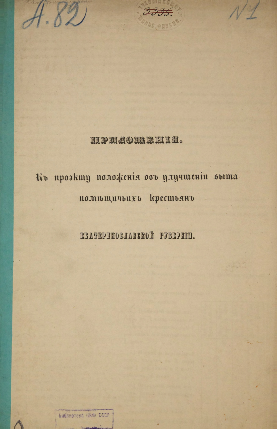 Приложения к проекту Положения об улучшении быта помещичьих крестьян Екатеринославской губернии