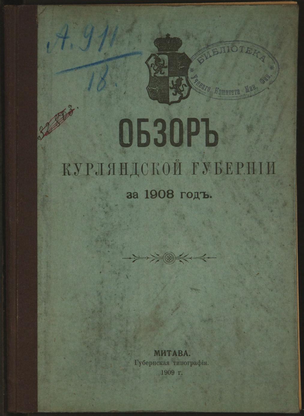 Обзор Курляндской губернии за 1908 год.