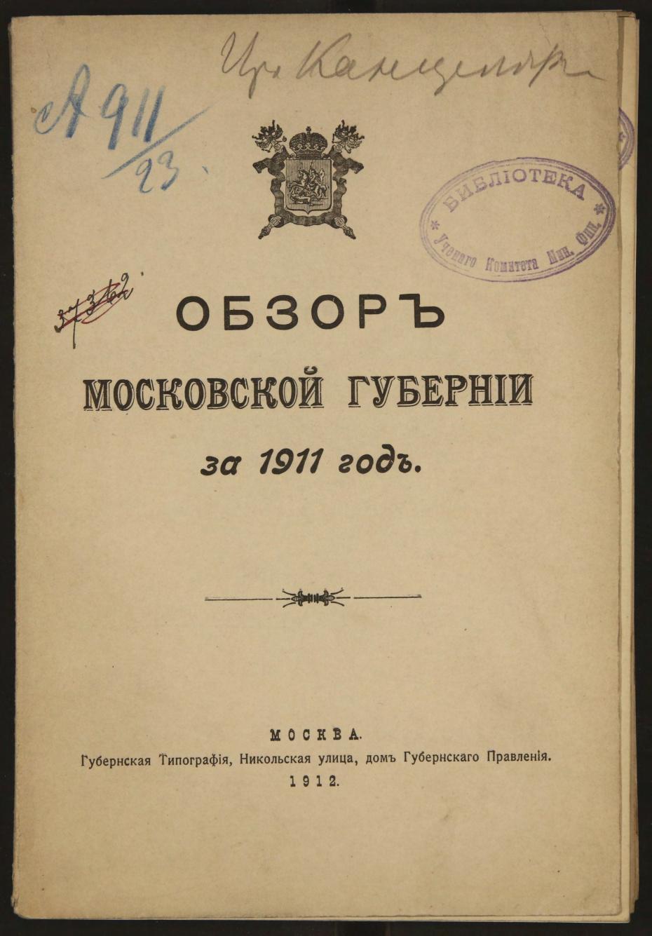 Обзор Московской губернии за 1911 год.