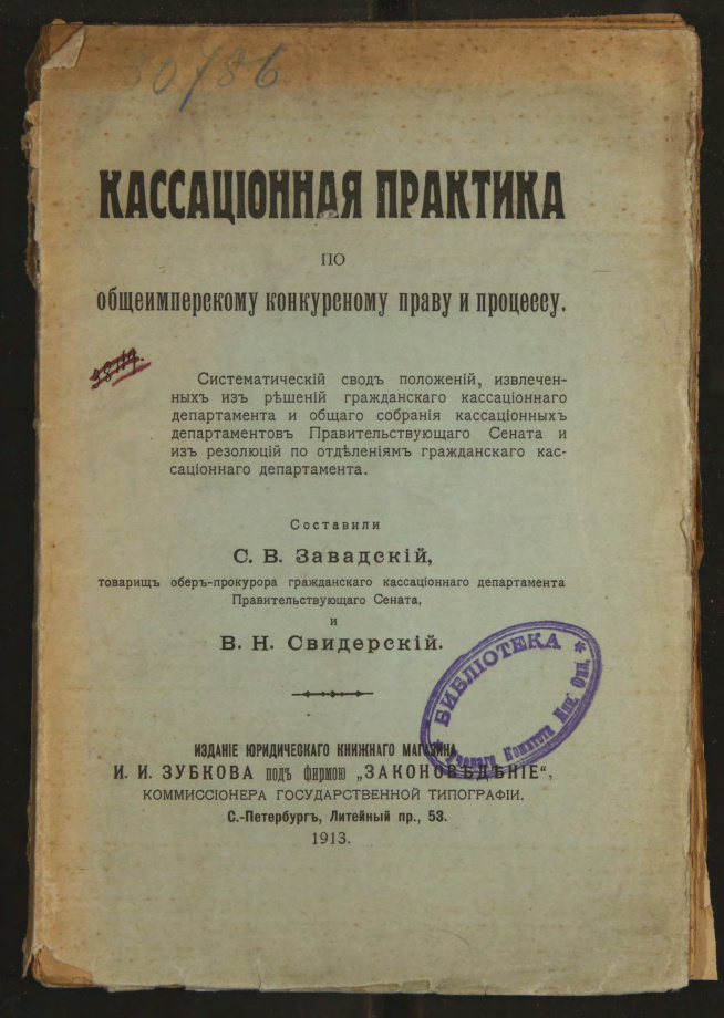Кассационная практика по общеимперскому конкурсному праву и процессу.