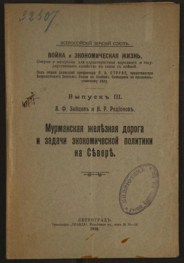 Мурманская железная дорога и задачи экономической политики на Севере.