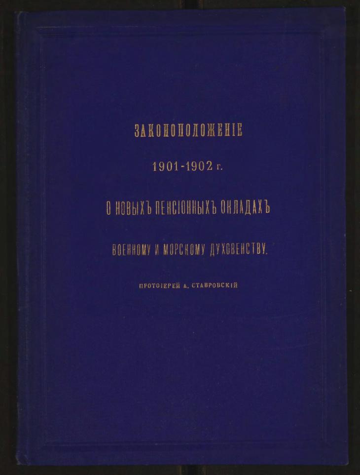 Законоположение 1901-1902 года о новых пенсионных окладах военному и морскому духовенству. Кронштадт, 1902.