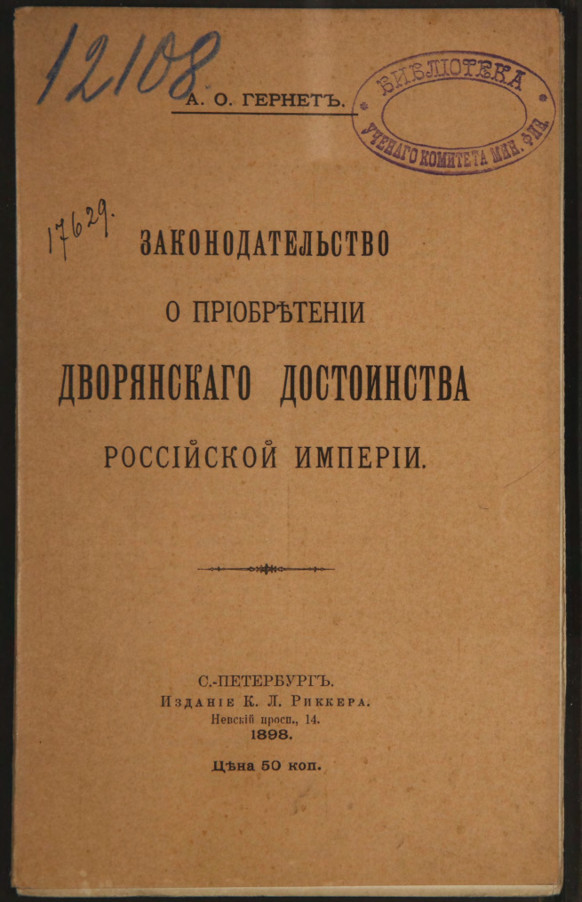 Законодательство о приобретении дворянского достоинства Российской Империи.