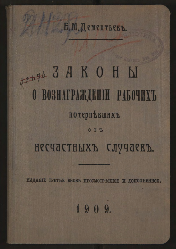 Законы о вознаграждении рабочих, потерпевших от несчастных случаев. Издание третье.