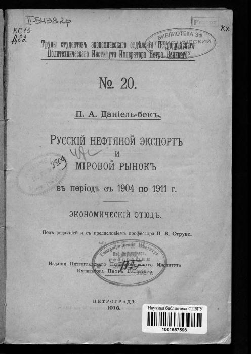 Русский нефтяной экспорт и мировой рынок в период с 1904 по 1911 гг. Экономический этюд