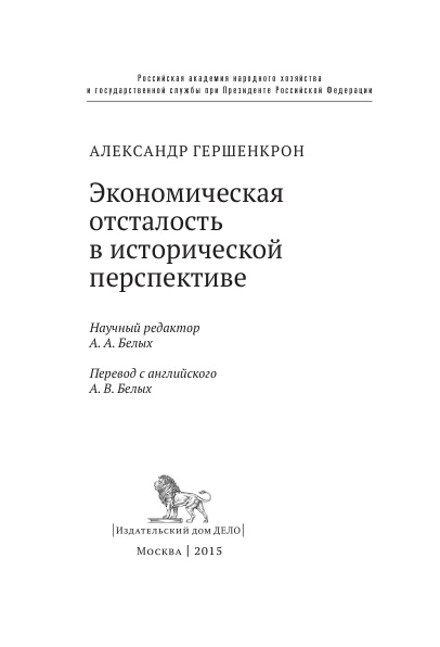 Необычный сборник статей и эссе крупного американского историка экономики, посвященных России (преимущественно Российской империи). Необычность в том, что в книге практически нет численных данных и таблиц - это достаточно свободные по форме размышления и объяснения, не сопровождаемые статистическими иллюстрациями. Рассуждения автора интересны, так как он видит российскую экономику в широком географическом и временном контексте. В то же время всё, о чем пишет Гершенкрон, получается каким-то неконкретным, его сочинениям не хватает фактуры.