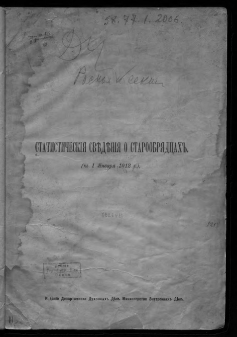 Статистические сведения о старообрядцах (к 1 января 1912 г.)