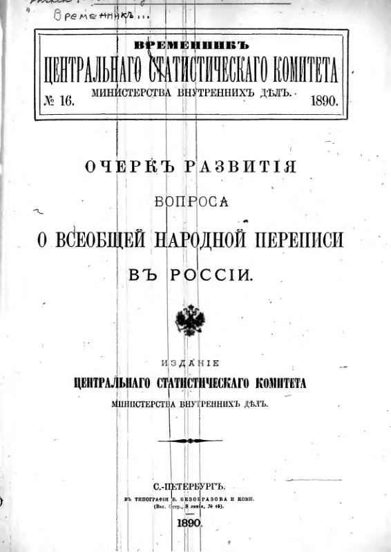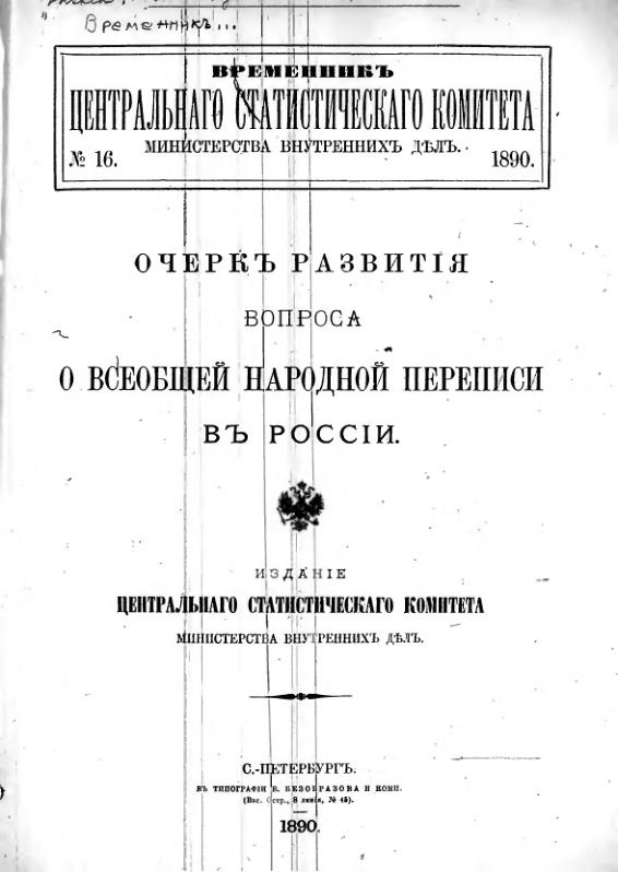 Очерк развития вопроса о всеобщей народной переписи в России