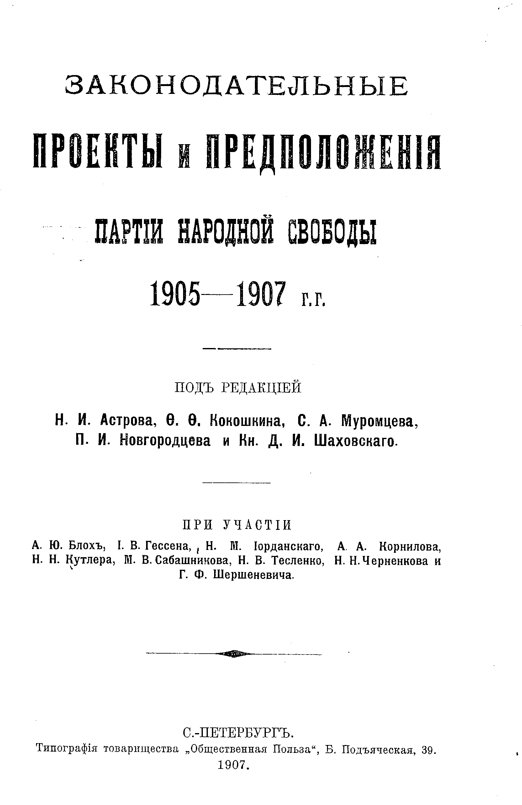 Законодательные проекты и предположения Партии народной свободы. 1905-1907 гг.