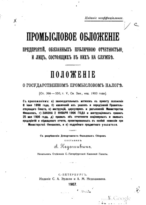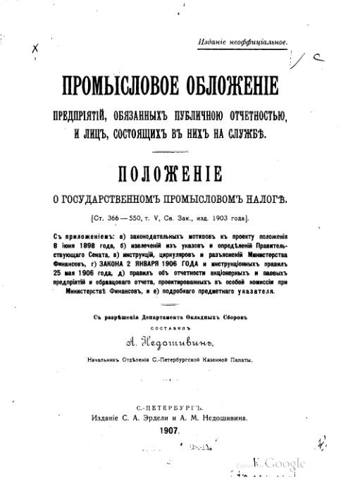 Промысловое обложение предприятий, обязанных публичной отчетностью, и лиц, состоящих в них на службе. Положение о государственном промысловом налоге