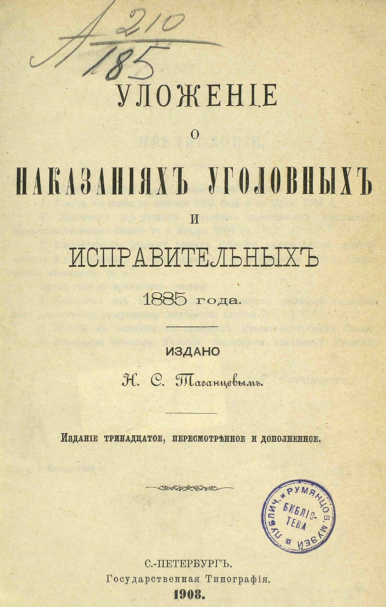 Уложение о наказаниях уголовных и исправительных 1885 года