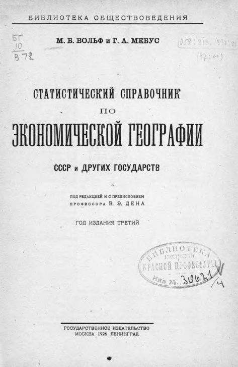 Статистическое издание, дающее обзор за период 1900-1925 годов. Издание замечательно по оригинальному подбору интересных данных, которые тр удно отыскать где-либо еще. Например, очень много данных по международной эмиграции-иммиграции, Хороший разбор экспорта и импорта России за много лет, статистика по различным отраслям сельского хозяйства и промышленности. Все данные даются в глобальном сопоставлении, позволяющем сравнить Россию со многми другими государствами. Статистика по расходам на Мировую войну, людским и материальным потерям. Изложение, в международной части, построено на современной европейской и американской статистике. Как и во всей статистики той эпохи, много места уделяется сравнению дореволюционного положения России и послереволюционного.