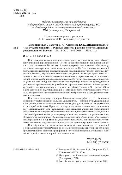 Бородкин Л. И., Валетов Т. Я., Смирнова Ю. Б., Шильникова И. В.