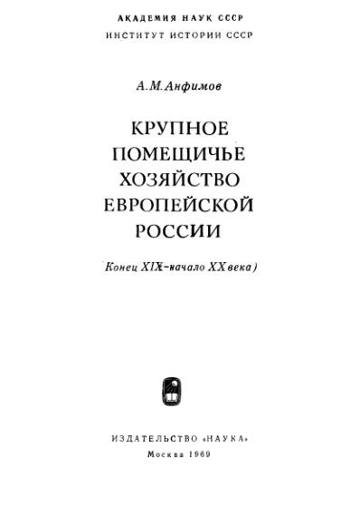 Крупное помещичье хозяйство Европейской России. Конец XIX - начало XX века