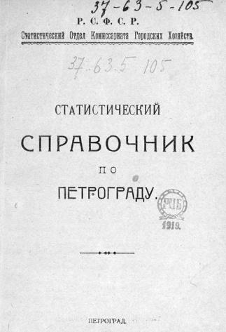 Напечатанный уже при советской власти статистический сборник, подготовленный городской управой в период временного правительства. Справочник содержит данные за 1907-1916 годы. Население по основным занятиям и по районам. Браки, рождения, смерти. Больные в больницах. Доходы и расходы самоуправления, городские займы. Описание городских предприятий. Начальное образование. Медицинские учреждения. Привоз и вывоз продуктов питания и главнейших товаров. Снабжение города топливом.