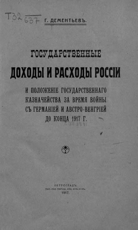 Государственные доходы и расходы и положение государственного казначейства за время войны с Германией и Австро-Венгрией до конца 1917 г.