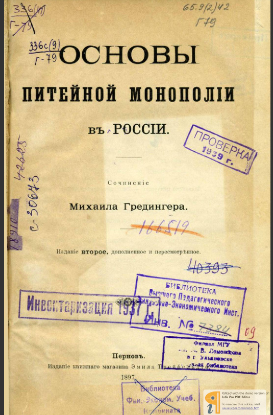 Весьма информативная брошюра, призванная ознакомить широкую публику с устройством вводимой в том момент питейной монополии. Обзор регулирования торговли спиртным в европейских странах, история регулирования торговли спиртным в России, очень дельное краткое изложение основ новой монополии. Книга удобопонятна и чичтается легко.