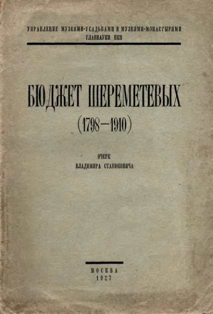 Бюджет Шереметевых (1798 - 1910).