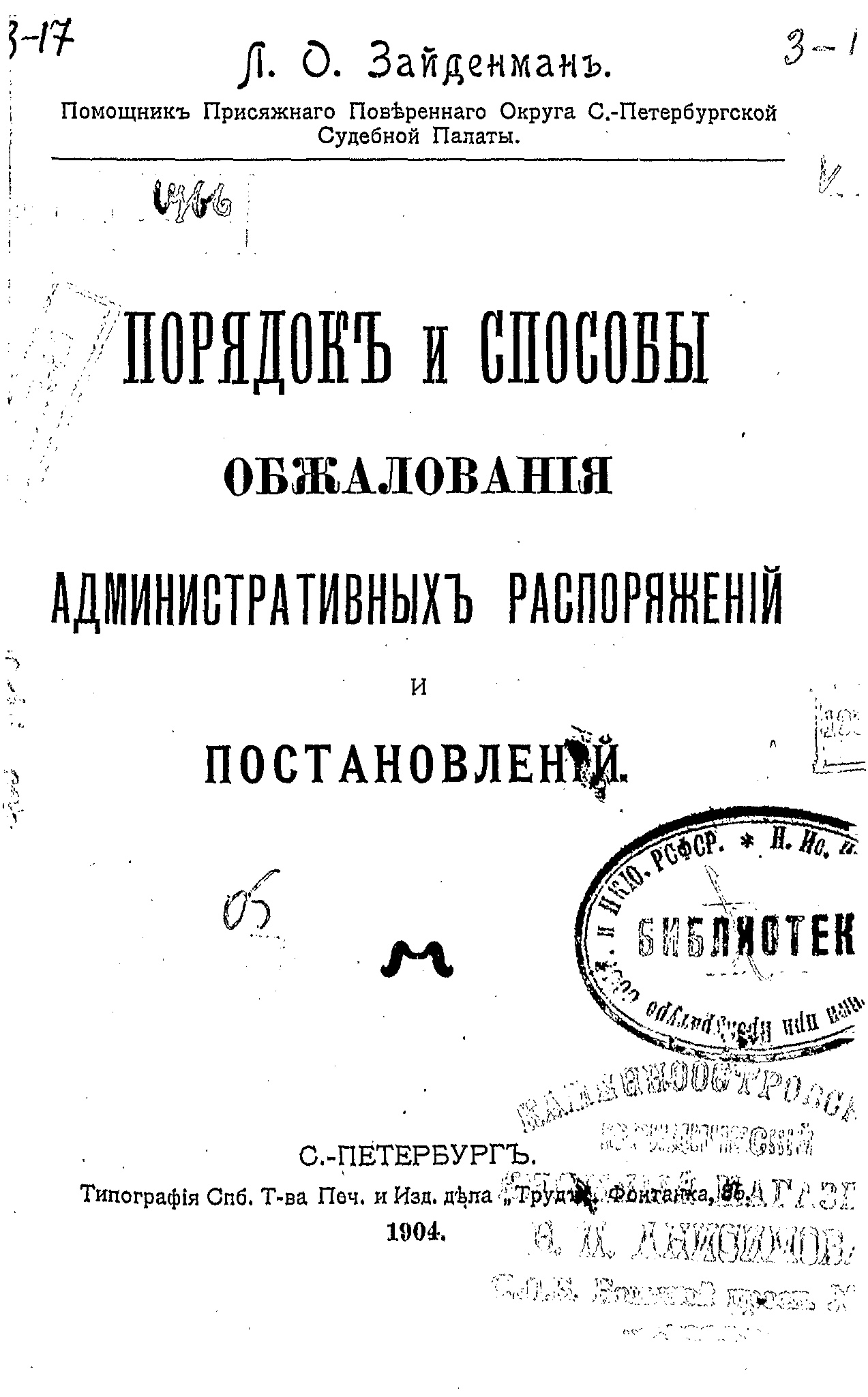 В старой России судебное обжалование любого рода административных распоряжений было невозможным; вместо этого существовала сложная система особых, административных инстанций, от присутствий на губернском уровне до 1-го и 2-го депаратментов Сената. Книга представляет собой краткий сборник отрывков из законоположений, описывающих действие этого запутанного механизма.