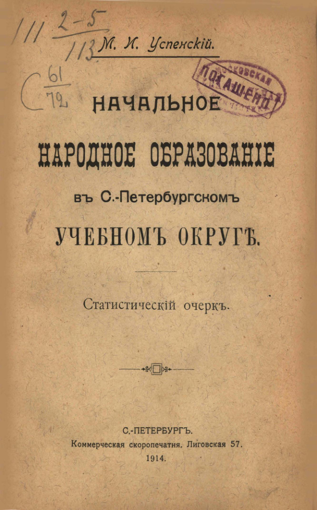 Начальное народное образование в С.-Петербургском учебном округе. Статистический очерк