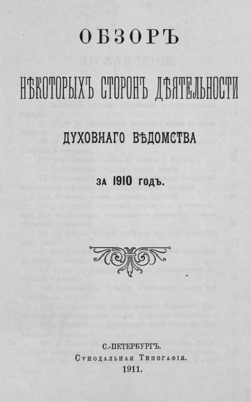 Обзор некоторых сторон деятельности духовного ведомства за 1910 год