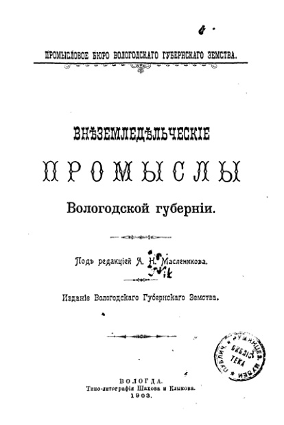 Внеземледельческие промыслы Вологодской губернии