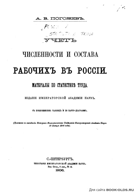 Подробная статистическая работа. Автор не ограничивается фабрично-заводскими рабочими, а разбирается и с рабочими на транспорте, в строительстве, на мелких предприятих и т.п. Статистика очень фрагментарная, что признает и сам автор. Например, количество ремесленников в России, по мнению автора, установить вообще невозможно. У всех цифр есть ссылки на источники, есть авторское мнение о достоверности этих источников - в общем, все данные выглядят солидно.