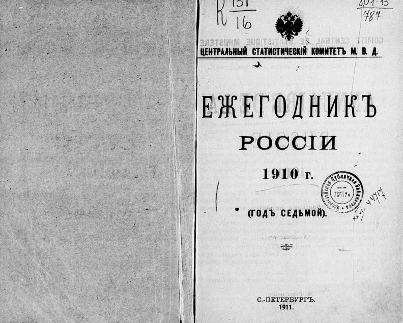 Огромный по объему и очень информативный официальный ежегодный справочник. Площадь и численность населения по губерниям и уездам. Распределение населения по полу, возрасту, вероисповеданию, национальности изанятиям. Смертность, рождаемость и брачность. Движение переселенцев и эмигрантов. Статистика землевладения, движение земель, цены на землю. Урожайность и сборы основных сельскохозяйственных культур, поголовье скота. Экспорт и импорт сельхозпродуктов. Количество фабрик и заводов. Производство, экспорт и импорт горнозаводской промышленности. Импорт и экспорт по границам, таможням и товарным группам. Параметры железнодорожной сети и внутренних водных путей. Статистика преступности: количество судебных дел, осужденных и заключенных. Государственный бюджет. Городские и земские бюджеты. Свобные балансы Госбанка и различных групп частных и общественных банков, сберегательных касс..